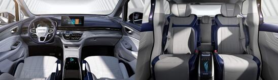 高科技配置也是个荣威iMAX8的一大主打,为了提升整台车的科技化程度,设计团队也为新车的座舱空间进行了不少大胆的创新,车辆采用了全球首创的“智能移动魔吧”移动中控台,滑动行程长达940mm,让三排座椅的乘客都能获得同级别宽待,不仅全舱交互式语音控制,同时还配有移动吧台和智能冰箱,让车辆在商务接待场景能够发挥更多效用。