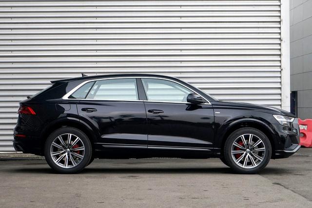 作为奥迪品牌旗下的一款旗舰SUV车型,奥迪Q8使用了MLB Evo纵置发动机模块化平台,大家要知道使用这个平台还有保时捷卡宴 (配置|询价)、兰博基尼Urus等这些豪华车型,然而它与其它品牌旗舰车型走沉稳和商务路线有所不同,奥迪Q8主打运动风,整车外观造型还是非常动感。(配图为:2019款45 TFSI臻选动感型)