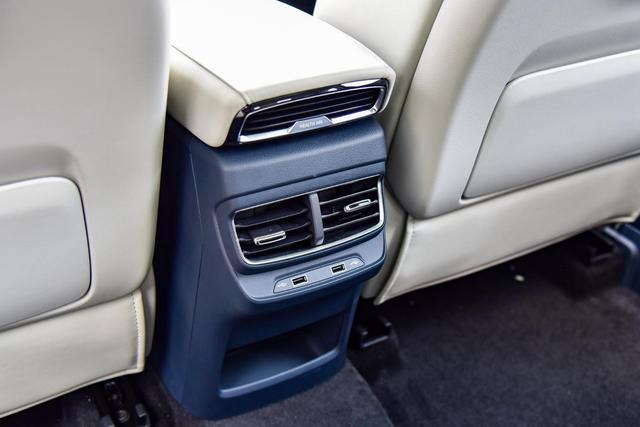 后排还提供独立出风口及两个USB充电接口,并且地板中央的凸起也不错很高,一定程度上还是照顾到了乘客的乘坐舒适性。
