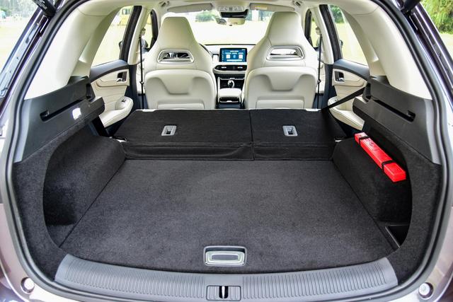 此外,车内的储物空间较为丰富,前后排储物格数量可观,后排座椅可按比例完全放倒,进一步提升了后备厢的储物容积,后备厢最大空间可扩展至1287L。