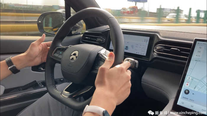 同时,蔚来的自动驾驶辅助功能也是颇受我和广贤老师青睐的,首先是已经很完善的NIO Pilot辅助驾驶功能,在ES6的左边方向盘按键上一键即可启动,此时车辆会以当前车速保持自适应巡航,同时激活车道保持功能。蔚来的这套系统我很早就体验过,无论是前车跟随还是实时调整方向盘的车道保持功能,基本都能做到让人放心,除非拥堵路况下,偶遇旁边车道的车辆进行小角度加塞儿,这个世纪难题目前好像也没有哪个厂商能解决好。