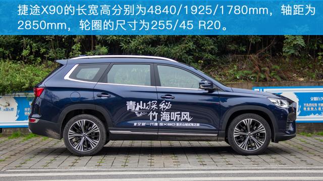 捷途X90在车身尺寸上也足够“旗舰”,将近4米9的车身长度使得整车的侧面看起来非常的大气,2850mm的轴距与同价位的车型相比也有着很大的优势。