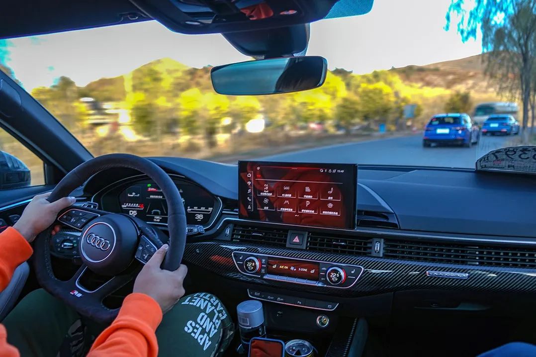 承担道路试驾环节的车型换成了奥迪RS4 Avant,它将舒适的旅行车和运动的性能车融合在一起,相比其他RS车型有了一丝独特的韵味。将RS4 Avant开上路后,可千万不要被它人畜无害的外表所蒙骗,它与RS5采用同款动力总成,在数据上也完全一致,即使在舒适驾驶模式下,轻踩油门踏板,它依然能够十分迅速的完成快速起步和超车并线等城市驾驶的常规操作。此次的试驾道路大部分为乡村小路,虽然路旁的风景十分秀美,但是路面状况却并不理想,经常有凸起的橡胶减速带以及损坏的路面出现,而在驶过这样的路面时,能够很明显的感受到RS4 Avant悬架的作用,虽然颠簸感依然强烈,但是却并不突兀,而是柔和的传递进车厢,由此可以看出,RS4 Avant的悬架具有很好的韧性,无论是赛道还是街道它都能很好的胜任。