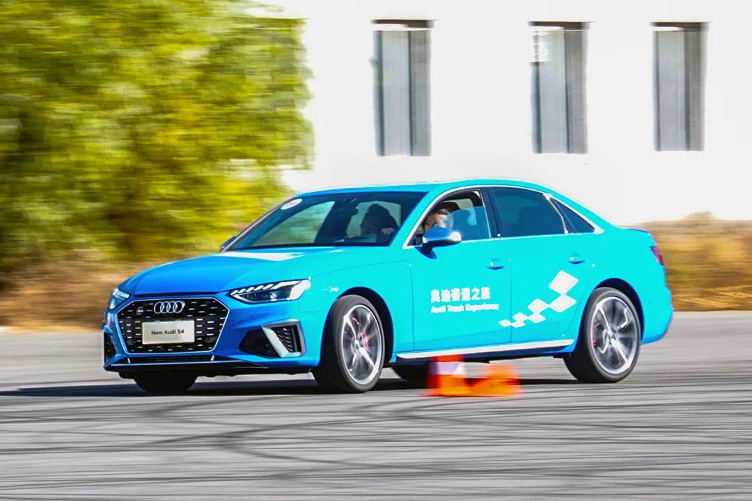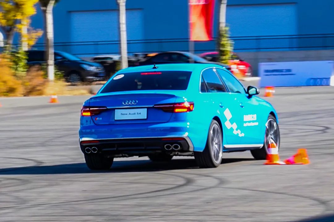 在绕桩体验环节,我们驾驶的是新款奥迪S4 (配置|询价),相比RS5和RS4,S4虽然在运动性能方面没有它们那么暴躁,但是S4有着更轻巧的车身,使得它在绕桩时动作更加灵活。在动力方面S4同样不可小嘘,它搭载3.0升V6双涡轮增压发动机,最大功率可达354马力,峰值扭矩可达500牛·米,在匹配上8速手自一体变速箱,以及quattro四驱系统,使得S4在绕桩时能够保持持续的动力输出。在绕桩过程中,底盘系统的支撑性对于完成绕桩时间的快慢起着重要的作用,S4前后悬架均采用五连杆独立悬架,在车辆连续进行快速转向时,能够给车身足够的支撑,能够使车轮始终牢牢贴在路面上,并且车头的指向性也十分精准,不会出现操控不稳的情况发生。