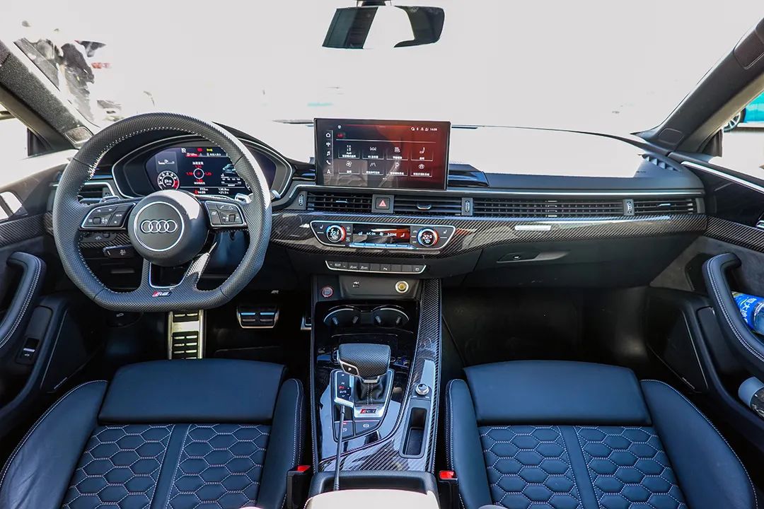 RS5 Sportback和RS 5 Coupe的内饰设计完全相同,依然是标志性的奥迪家族式设计,其中,新款车型换装了10.1英寸的可触控中控屏,再配备上12.3英寸的全液晶仪表盘使得车内的科技感保持了奥迪品牌一贯的水准。此外,新款RS5还在内饰采用大面积碳纤维材质和Alcantara材质进行包覆,并且三辐平底式方向盘也可选装Alcantara材质包覆,使得车内的运动氛围十分到位。