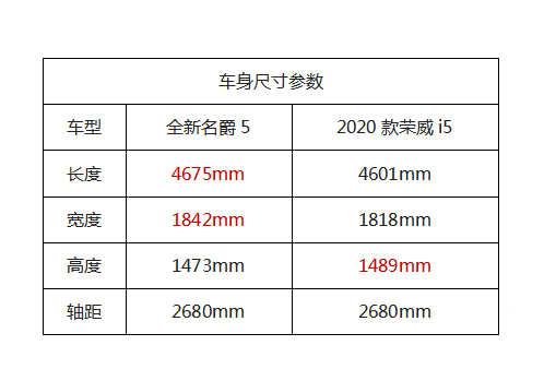 车身尺寸方面:全新名爵5长度宽度略胜一筹