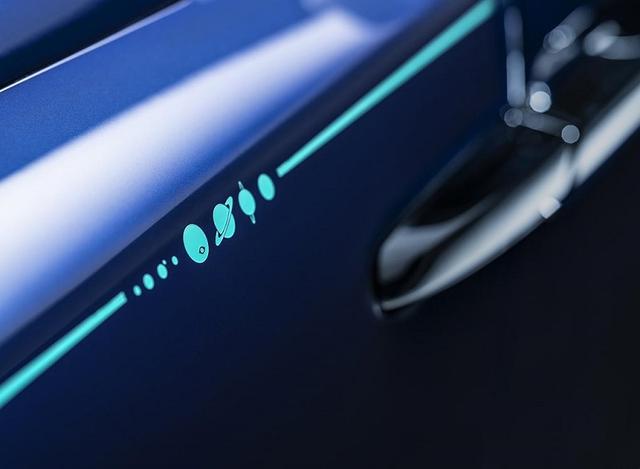 作为劳斯莱斯车型的亮点之一,新车的星空顶上也被装饰成太阳系星图,与星空顶设计完美的融合到了一起。同时,在新车后排的饰板上也有卫星云图的设计,此外,连这辆劳斯莱斯魅影Inspired By Earth特别版的踏板处也换上了太阳系八大行星的图案。