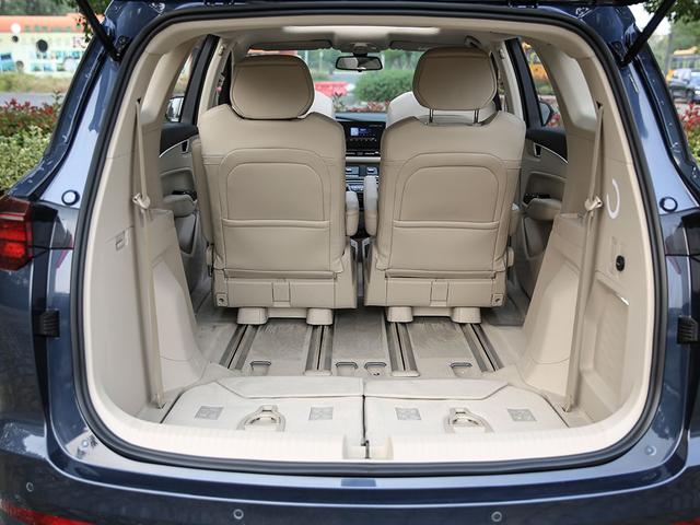 车内空间是该车的亮点,新车5米的黄金车身让舱内空间格外宽绰,第二排、第三排可移动距离分别为360mm、200mm,进能拓宽后备箱空间,退能秒变大四座,档次感提升不少。