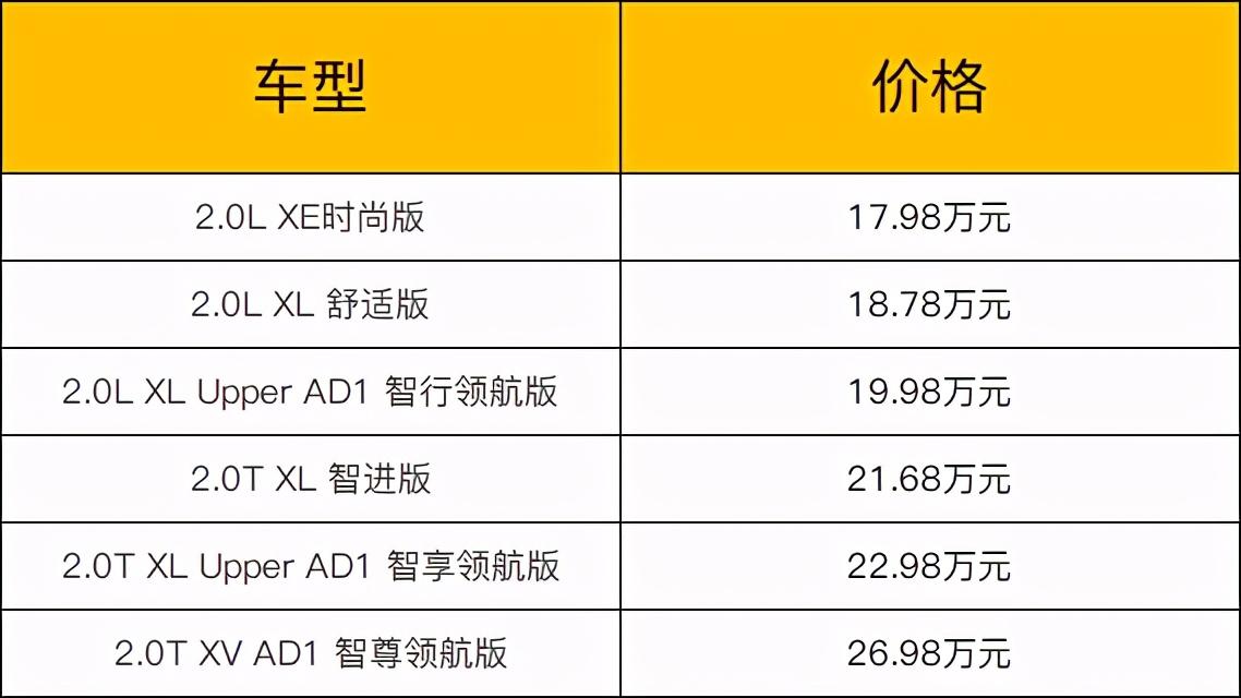 动力方面,新车将提供2.0L和2.0T两种发动机版本,其中2.0L发动机最大功率为115千瓦,峰值扭矩分别为197牛·米,传动方面,与发动机匹配的是CVT无级变速箱;2.0T发动机最大功率为179千万,峰值扭矩为371牛·米。传动方面,同样匹配CVT无级变速箱。