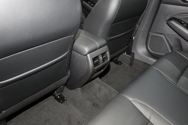 后排座椅材质和前排保持一致,座椅同样非常柔软,不过后排中央地台还是有一定的隆起,一定程度会影响到舒适性,遗憾的是全新天籁全系都没有配备座椅通风功能。