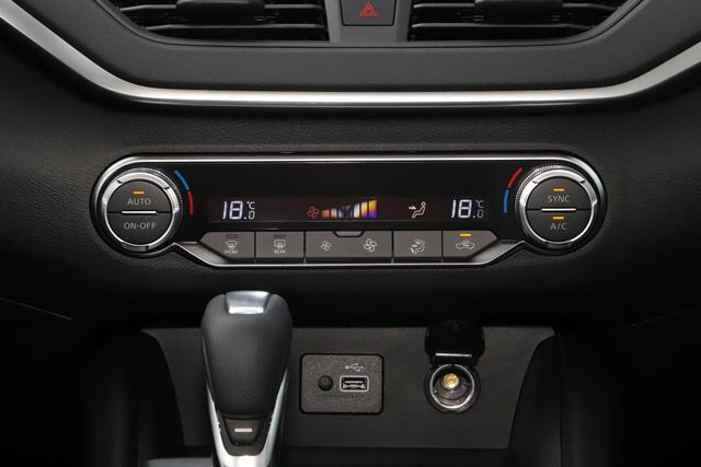 悬浮式中控大屏下方配备双区域自动空调系统,操控旋钮的表面和手感都很精致,此外,电子驻车和AUTOHOLD也都有配备。