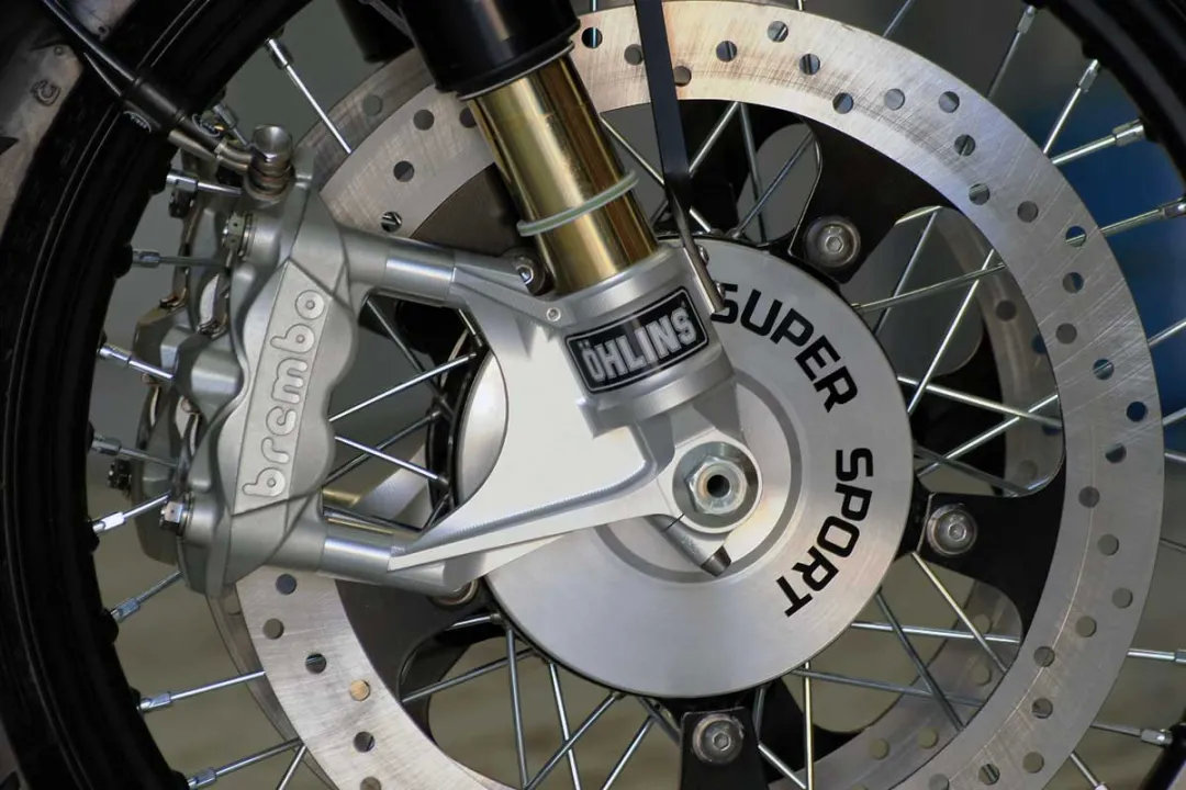 为了让这杯超浓咖啡,有更好的运动表现,冈萨雷斯为它换上了世界知名品牌Ohlins的前后减震,而且还细心的为后减震缝制了精致的皮套,进一步诠释了复古的精致腔调。制动方面也得到进一步强化,换上了Brembo的对向四活塞辐射卡钳,夸张的是就连后制动也是Brembo对向四活塞辐射卡钳,这套制动系统应对它1500cc六缸的强大动力,完全不是问题。