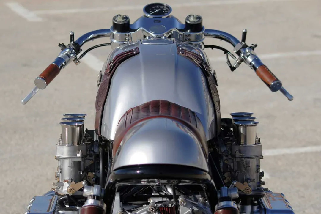 供油系统装上了来自1968年保时捷911的Weber 40IDA 3C化油器,让这台水平对置六缸发动机拥有更强的动力表现。作为一台Cafe Race风格的车型,其外形不容忽视,为此换上了本田 750 Super sport的原厂油箱,简约流线的圆润造型,契合了复古一道的精髓。