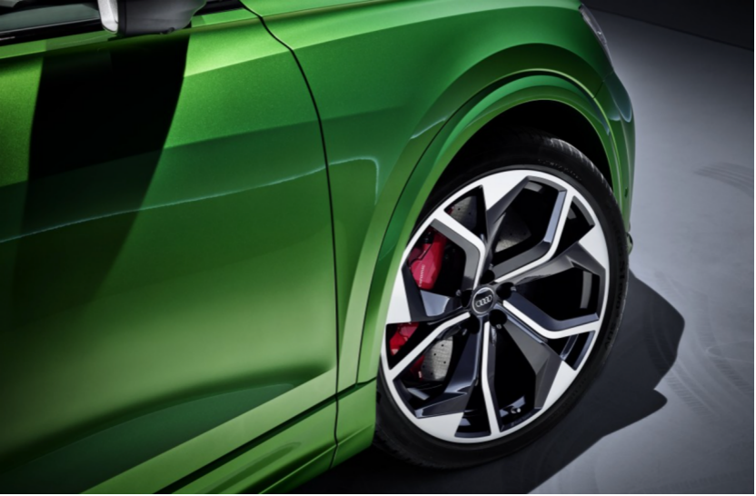 作为奥迪的顶尖性能车型,RS Q8配备了295/35 R23的轮胎,轮毂尺寸相当大,并且在刹车系统上配备了前440mm/后370mm的碳陶刹车盘,匹配的是多活塞卡钳。