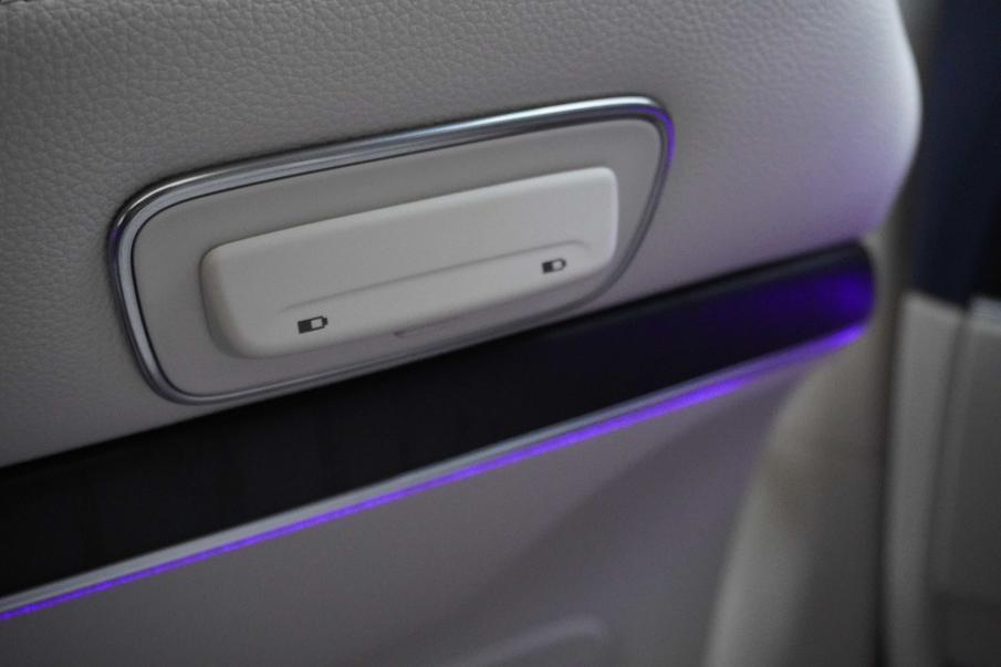 如果是E350L车型,托盘部分则会换成一个7英寸Pad,通过这个Pad可以对座椅、空调、音乐、氛围等进行操作,还有最顶配车型的享受待遇——座椅按摩。