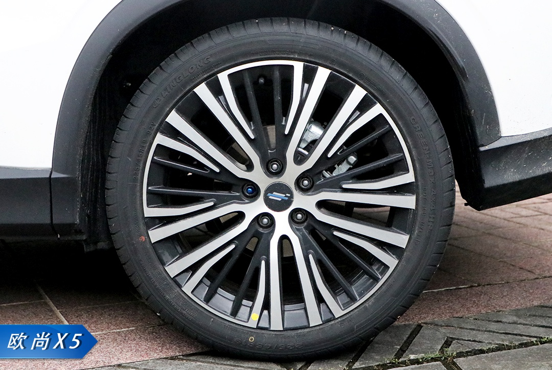 车身尺寸方面,欧尚X5的长宽高分别为4490/1860/1580(1590)mm,轴距为2710mm。此外,欧尚X5配备了一套玲珑轮胎,尺寸为225/45 R19,与之匹配的是密辐轮圈。笔者认为,欧尚X5的侧面造型非常运动,若将密辐轮圈改为五辐轮圈,或将起到更加干练的视觉效果,强化车身侧面的整体性。