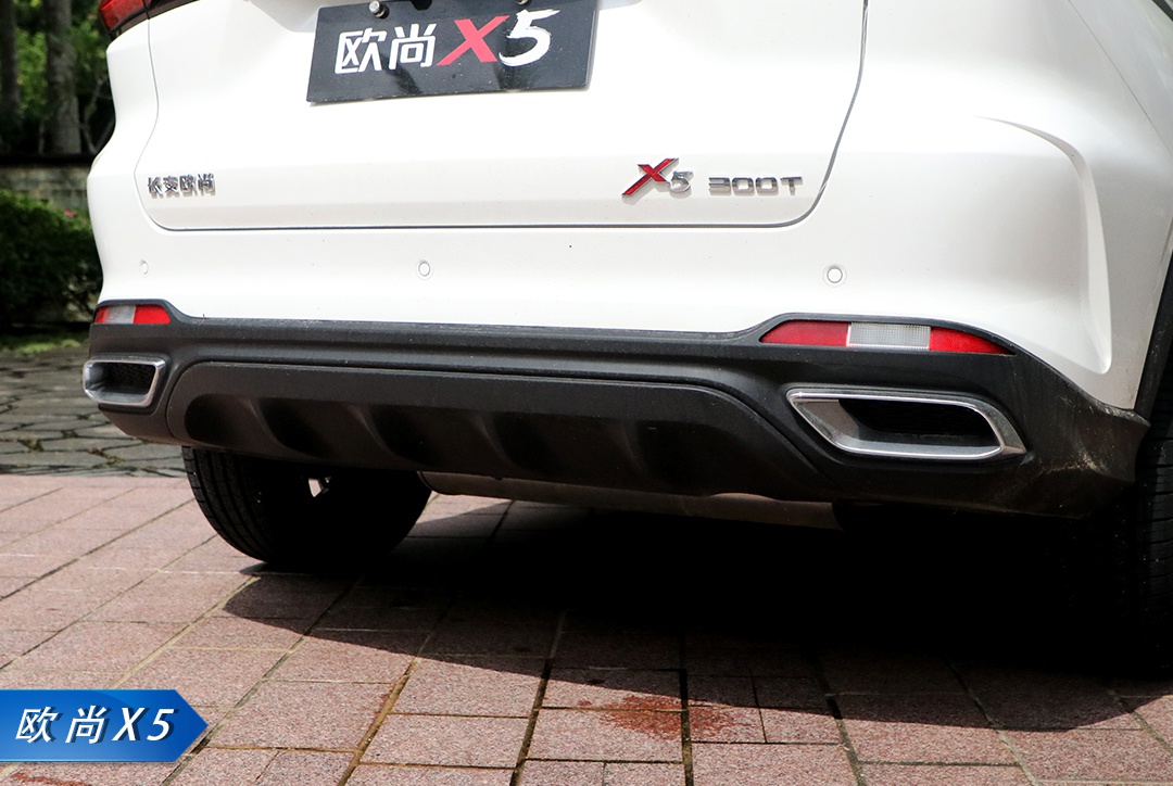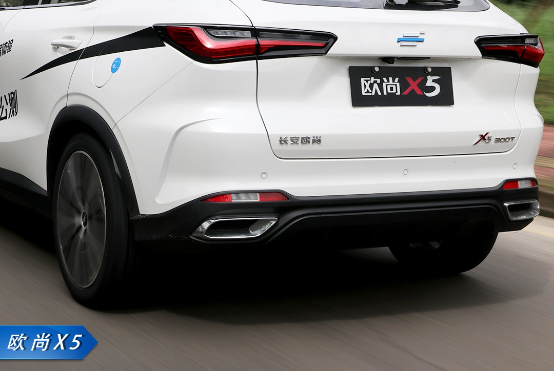 相比犀利的前脸造型,欧尚X5的尾部设计着重于强调高级感。柔和的线条充实着尾部造型,使其看起来更加饱满圆润。细节上,顶部设有小尾翼,配合底部的双边单出排气布局,丰富尾部的运动气质。不过,排气孔为封闭式装饰,真正的排气孔隐藏在后保险杠下方。尾灯依旧是点睛之笔,得益于LED光源体积小的特点,将全部功能性车灯融合在内,而长条状造型更是呼应前日间行车灯,点亮后的视觉效果不输豪华品牌。