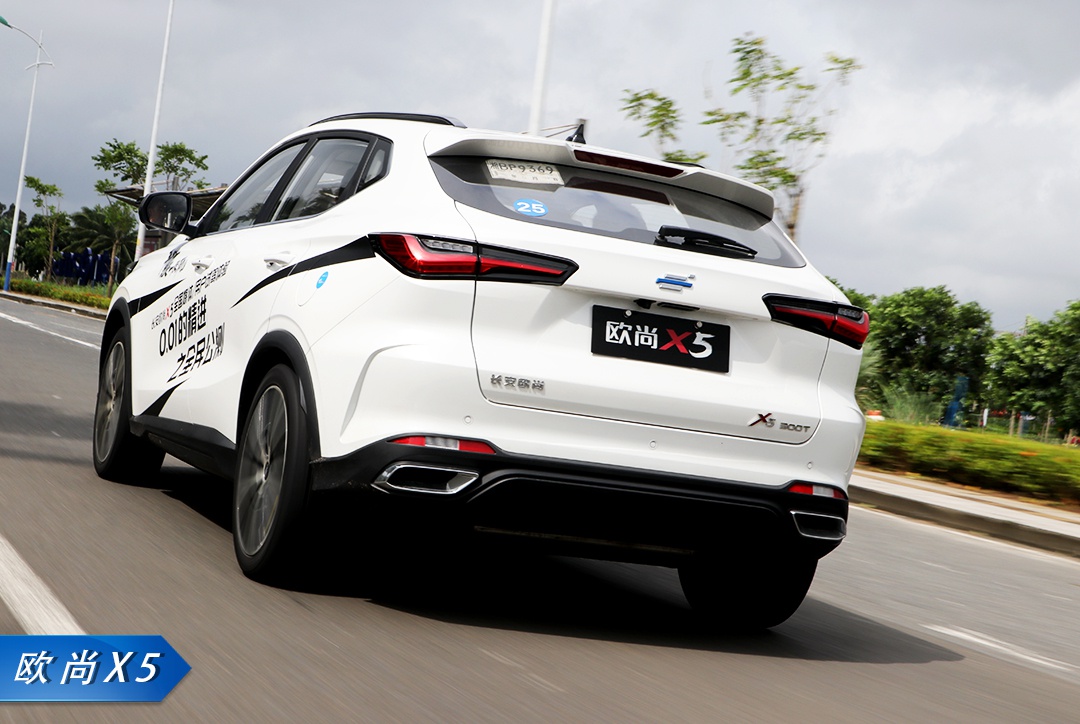 欧尚X5配备了4种驾驶模式,分别是舒适模式、运动模式、经济模式和赛道模式。从驾驶感受上来看,发动机的低扭充沛,毕竟1250rpm即可迸发出最大扭矩。舒适模式下动力输出更柔和,变速箱的表现也是不急不躁,相对沉稳。但在运动模式下,动力输出非常直接,轻点油门踏板就能感受到不小的推力,像一匹快要脱缰的野马。随着深踩油门踏板,动力是源源不断的,在限速120km/h的高速路上,压着限速前行,依然可以感受到后劲十足。截止目前,笔者试驾过的同价位燃油车中,欧尚X5的动力表现稳居第一。
