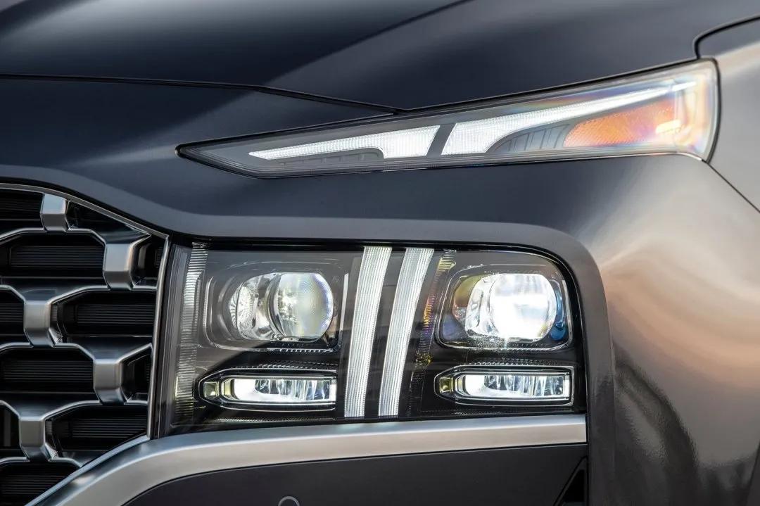 新款Santa FE的外观内饰带来的新鲜感比一般的改款强多了。重新设计的车头有着现款车型的神韵,但更加大胆的进气格栅带来了不一样的感觉,原来位于车头最上方那粗壮的镀铬饰条挪移到了进气格栅下面,配合现在造型更加扁平更加成熟的格栅设计,现在的车头视觉重心已经比之前要低了很多,而且在观感上也更加符合这一级别车型该有的感觉。