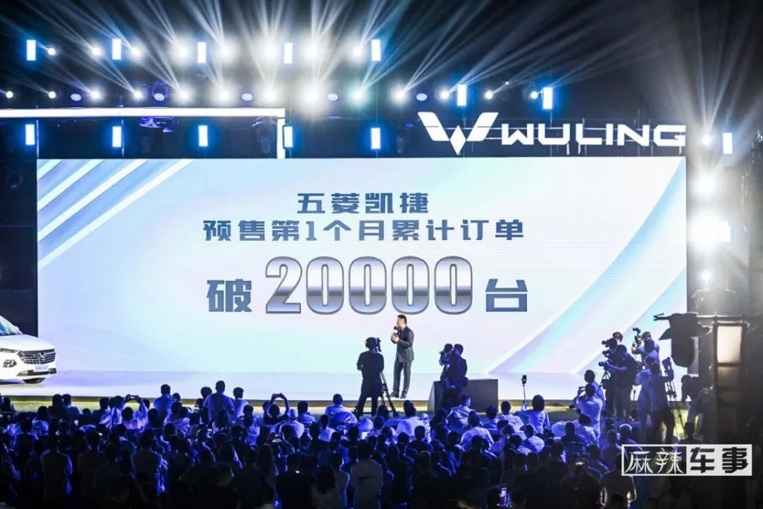 在海南万宁的五菱凯捷 (配置|询价)上市发布会上,五菱给出了这样一组数据:预售开启第一个月累计订单已突破20,000台。
