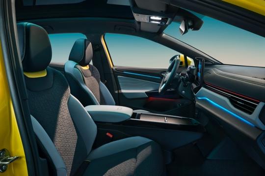 来到座舱内,ID.4 X创新打造了潮流坐标、典雅格调与都市激情3种主题拼色内饰,充分满足消费者的个性化需求。i-ID信息组合仪表和12英寸悬浮式中控大屏营造出未来观感。i-ID信息组合仪表盘前置电子挡扭的设计富有科技魅力。前排豪华气动按摩座椅集气动腰托、座椅加热与记忆功能于一身,彰显豪华品质。得益于MEB平台的优势,ID.4 X拥有领先同级的车内乘坐空间,配合全视野玻璃天顶以及全车超过50处的声学优化措施,让驾乘者享有惬意、静谧的乘坐感受。此外,心情炫彩氛围灯、人性化的中央通道设计、金属律动踏板等更增添了驾乘乐趣。