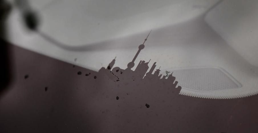 主驾驶前挡风玻璃,还有上海外滩剪影图,可谓是不期而遇的小惊喜。