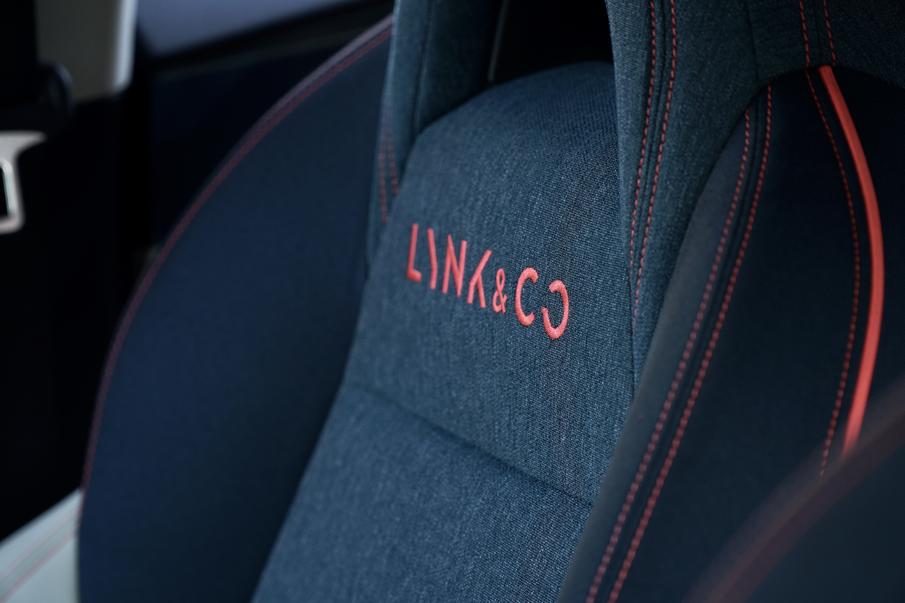 同时在前排座椅上还设计了“Lynk&co”的缝线Logo,撞色的颜色搭配,非常吸引眼球。