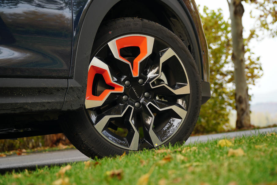 悬浮式车顶与轮圈也应用了撞色元素,非常吸睛。这样个性的轮圈自然要匹配一套好的轮胎,领克06采用来自马牌的UltraContact UC6 SUV轮胎,规格为225/45 R19。