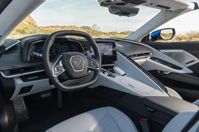 内饰部分,新车追求驾驶者的人机交互体验,搭载了全液晶仪表盘、悬浮式中控屏以及换挡拨片等部件,不过平底加平顶的方向盘设计稍显另类。动力方面,新车采用了中置后驱布局,搭载了6.2L V8自吸发动机,最大功率为369kW,峰值扭矩为637N·m,匹配8速双离合变速箱。