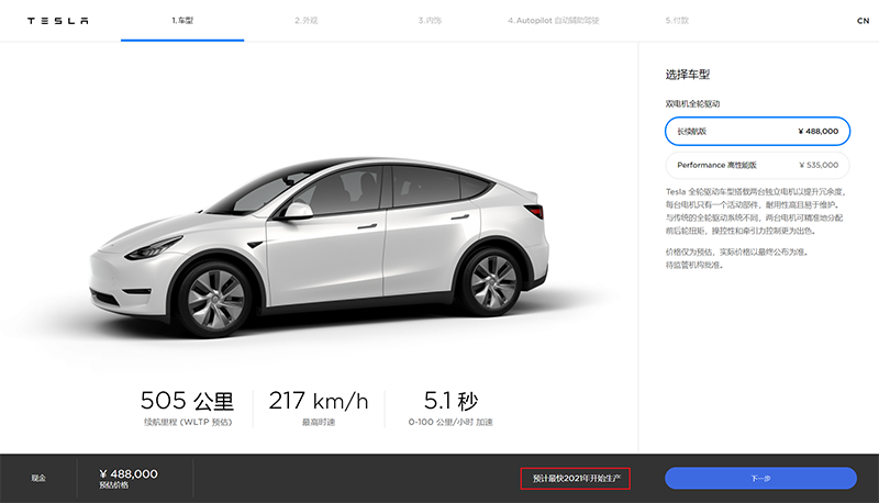 官网信息显示,新车预计最快2021年开始生产,但按照特斯拉的路数,国产Model Y很有可能也会像当时的国产Model 3 (配置|询价)一样,提前量产并交付。