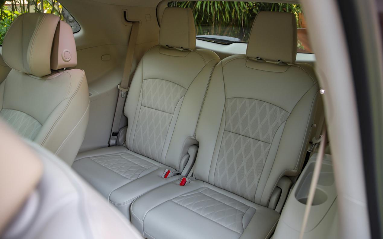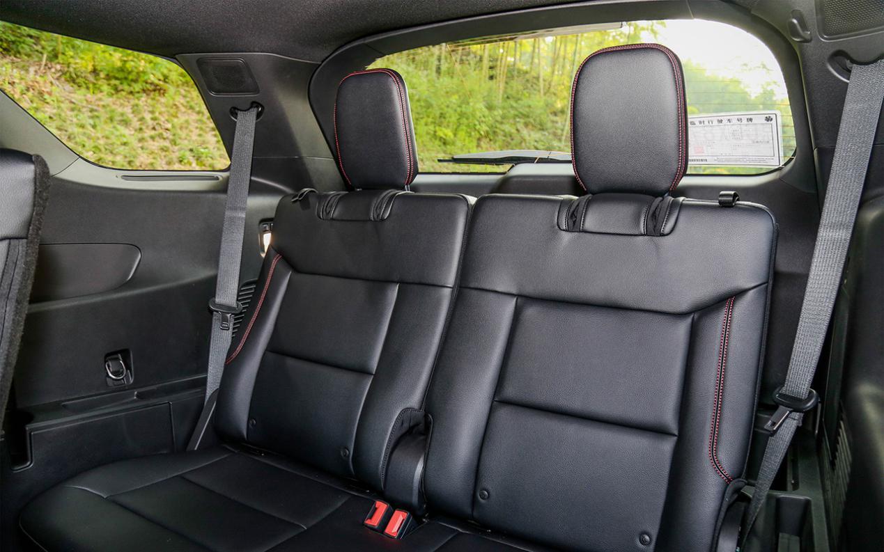 内饰是不太被看好的地方,虽然层次感不错,但中控屏尺寸太大,有种与车内布局格格不入的感觉,视觉效果并不太好。空间方面,以我们推荐的6座车型为例,184cm的体验者坐进前两排乘坐空间都非常宽裕;只是如果三排乘客都是身高超过180cm的大个子的话,第三排的乘坐空间就比较局促了。当然这种用车场景肯定不会太多,所以整体乘坐空间表现也是完全可以令人满意的。