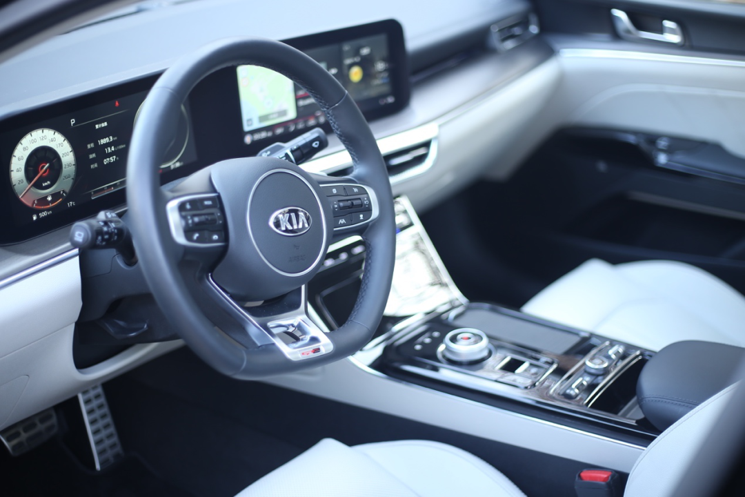因为新一代的K5凯酷实在是太“有颜有料”,所以颜值部分放在最后,先从动力说起。此次试驾的车型是搭载了2.0T发动机的380T GT-Line 旗舰版,搭配8AT变速箱。这台2.0T的发动机拥有240匹马力和353N·m的最大扭矩,而百公里油耗仅为6.8L。对比一下,45万的奔驰E260L运动型都仅搭载184匹马力的1.5T发动机。凯酷可是比2.0T的E300L才只差十几匹马力了。
