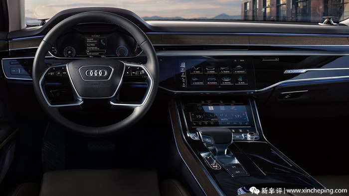 首先是设计方面,A8L的内饰也是这一世代奥迪最新理念的首演,其整体思路与外观也是大致同步的,通过更多强调横向的平直特征线,来适当降低视觉上的体积感,营造更轻盈干练的感觉同时,也勾勒出了如同游艇般的包围感。