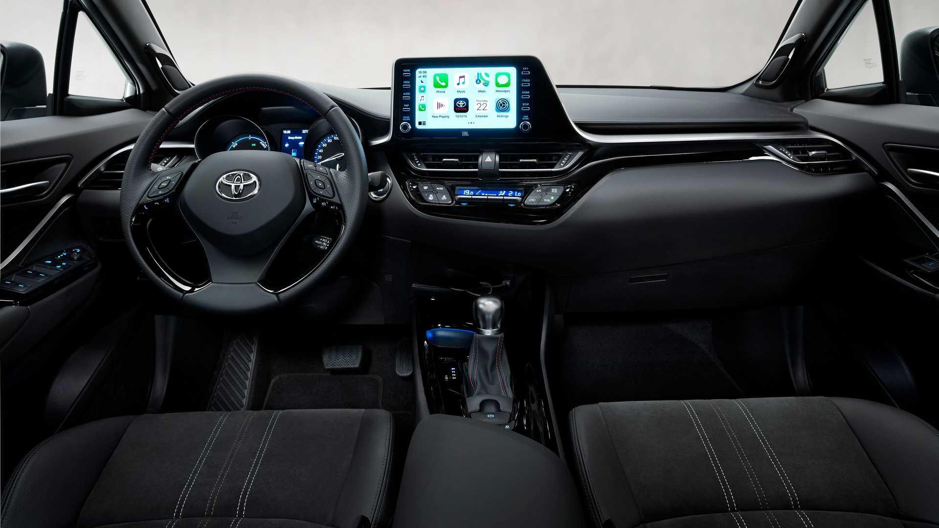 车内也进行了一些改变,从Alcantara内饰和打孔真皮方向盘到一堆"GR "标识和缝线,GR运动版标配前排座椅加热、LED大灯、有色车窗、电动后视镜,并支持Android Auto和Apple CarPlay。如果需要额外的费用,丰田会很乐意地加入一套带有9个扬声器的JBL音响系统。