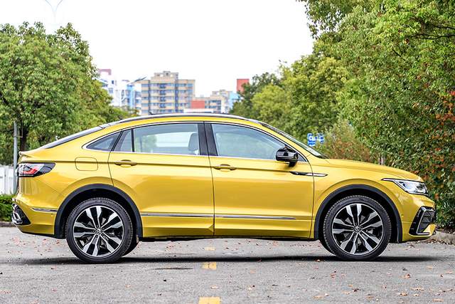 如果从前脸来看途观X还有一些SUV味道的话,从车侧开始途观X的车身比例愈发接近一辆大号的"轿车"尺寸,车顶线条从A柱顶端开始向下倾斜,顺滑的延伸至车尾,不过A柱到C柱这段位置的倾斜幅度比较克制,实现了美观度和实用性的兼得,上翘的尾翼和上扬的腰线进一步强化了整车的运动感。
