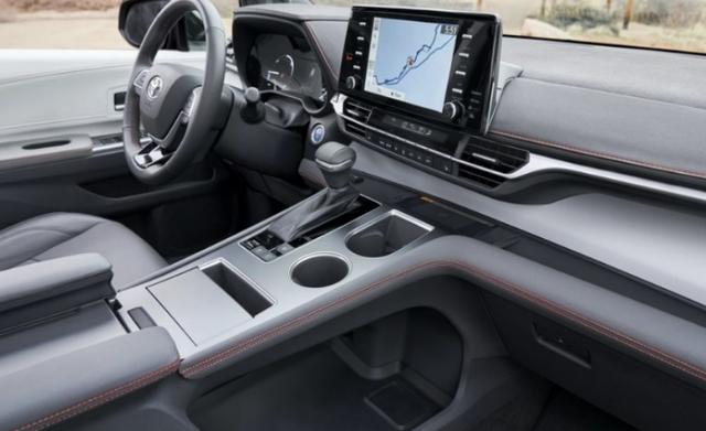 内饰设计采用了简约的风格,延续现有丰田的设计语言,并且增加了许多实用性的设计,中控台能触及的地方基本上都被软质材料所曝光,而且造型也比较大气,采用了悬浮式的屏幕以及液晶仪表。中控台下方为口空设计,扶手箱巨大且长度夸张,不仅满足了前排乘客的需求还照顾了后排乘客,总体来说储物能力很高。