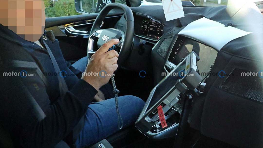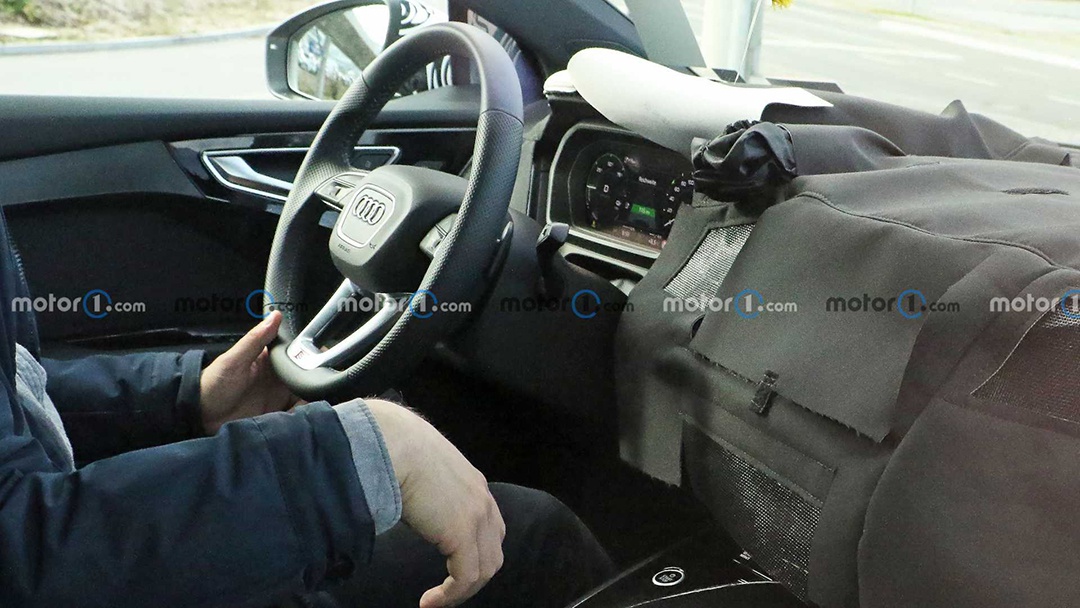 尽管内饰处于伪装状态,但还是暴露出部分细节出来。方向盘除了常规的三辐式以外,还将会有一款为四辐式造型,并且握环上方也为平底样式,方向盘中间的奥迪四环LOGO,则采用扁平化设计。而仪表盘采用全液晶屏幕,显示界面为左右两侧环形仪表。