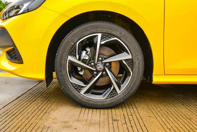 采用黑银双色的铝合金轮圈,类似于花瓣的造型,看起来运动感十足。车身颜色上新车主打色叫"核能黄",理念来自核能爆破的撞击和震撼,除了这个颜色外,还有赛博灰、赤焰红、冲浪蓝、雪山白、曜石黑五种配色。