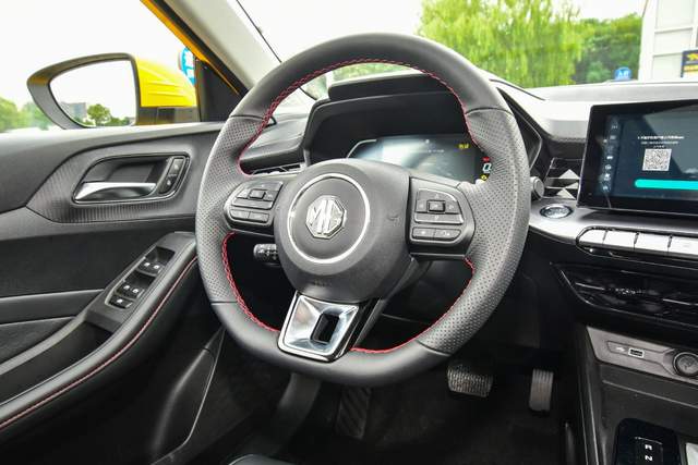 高配车型配备了真皮方向盘,造型延续了家族化的设计,两侧有打孔处理,平底的造型与红色缝线,也显得更加运动。