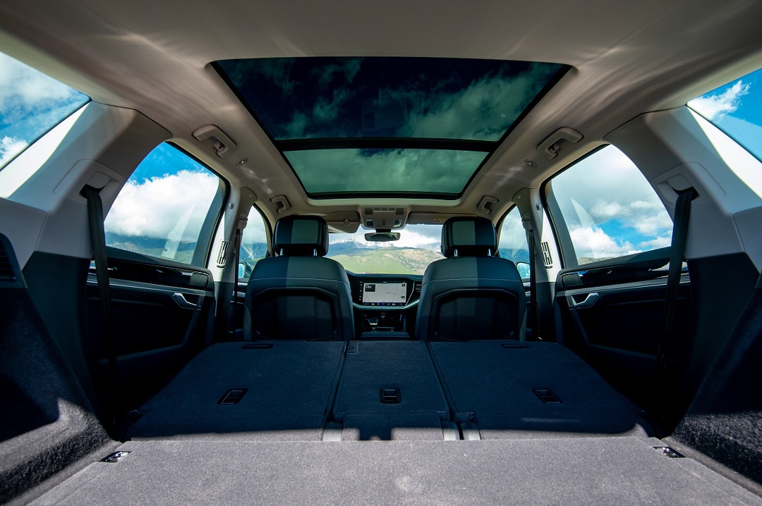 途锐eHybrid的车身尺寸十分宽大,而采用5座座椅布局使得它的后备厢空间十分宽敞。并且后排座椅还支持比例放倒,整体放倒后虽然不能实现全平,但是突起的角度并不大,无论是日常超市采购的货物,还是长途旅行的大件行李,它都能装下,极具多功能属性。