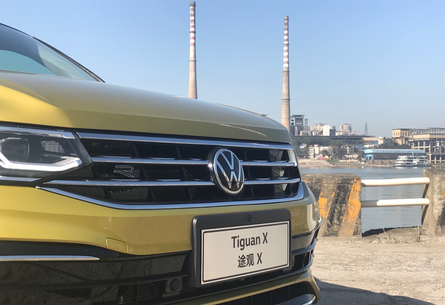 简单说一下外观,途观X虽然是途观L的衍生跨界SUV,但采用了海外版最新Tiguan的全新设计风格,所以第一眼看到这台车时你不会想到它是一台途观L的衍生车。细看的话,整个途观X的前脸运用了大众经典的镀铬饰条进行装点,迎合了国人喜欢镀铬的审美。