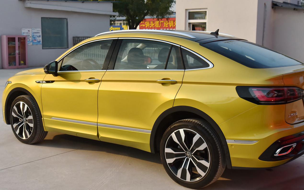 大灯组造型与第八代高尔夫也是如出一辙,全系都配备LED光源,其中两驱顶配和四驱顶配拥有矩阵式大灯,照明效果更好、科技感也更强。侧面看上去很协调,丝毫没有途观L加长成轿跑的痕迹,20寸的双色轮圈搭配倍耐力轮胎,美观度、耐用性方面表现也都很不错。车尾最大亮点在于配备了贯穿式尾灯以及上扬小鸭尾,看上去辨识度不错,层次感也比较的分明。