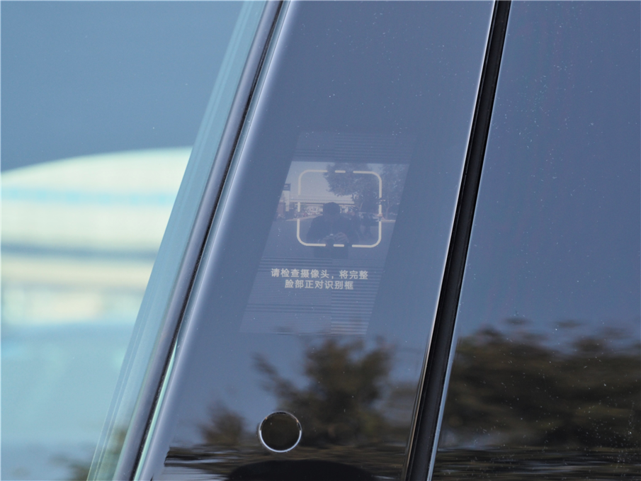 这一功能使用起来也非常简单,使用时只要用手点一下B柱饰板的屏幕,就会出现凯迪拉克的欢迎界面,随后上方的双目红外3D摄像头就会进行识别。