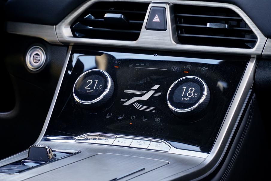 空调控制区换成了路虎车型中常见的触控面板,双区温度调节采用两个旋钮完成,在提升档次感的同时不失便利性,有豪华车感觉。