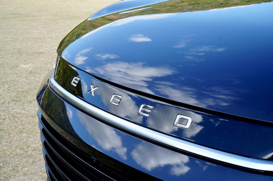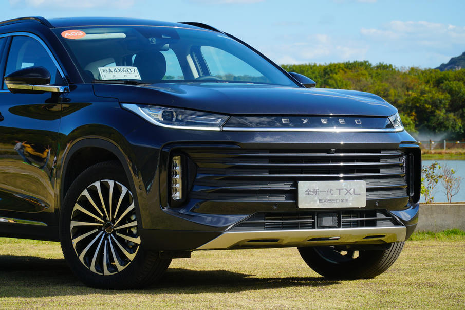 两侧垂直的LED日行灯加上两侧柳叶式的前大灯组提升了整体的辨识度,车头标识的“EXEED”五个英文字母采用“星空物语LOGO呼吸灯”设计,点亮后效果十分亮眼。