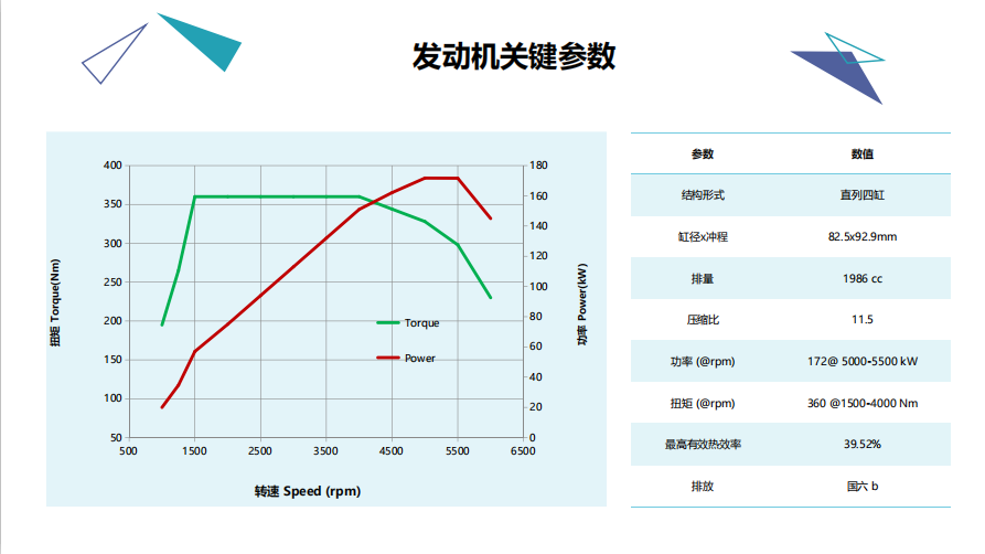 排量1986cc(2.0T),压缩比11.5:1,最大功率172千瓦(234马力),峰值扭矩360牛·米,最高有效热效率39.52%,满足国六b排放标准。这些参数是衡量一款发动机水平的主要依据,单从数据上看,这款发动机绝对达到了目前主流合资车型的水平,但如果不刻意提起,你绝不会想到这些数据竟是来自一台国产发动机,而这些正是如今“蓝芯II ”2.0T发动机的实力。
