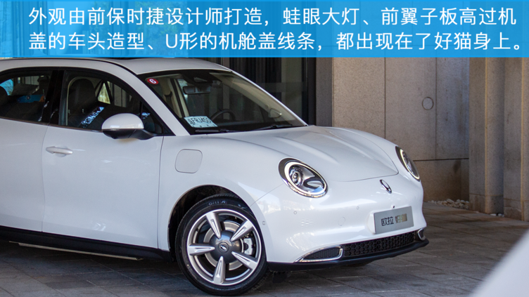 长城在欧拉好猫的外观设计上下足了功夫,官方将它的外观设计称之为“复古未来主义”,这个名词猛地一听好像有一些抽象。通俗来讲,“复古未来主义”就是将经典的设计元素用当下的审美进行重塑,运用到最新的车型当中。并且他们聘请了前保时捷设计师埃蒙·德尔塔亲自操刀,所以诸如蛙眼大灯、前翼子板高过机舱盖的车头造型、U型的机舱盖线条等等保时捷经典的设计元素都出现在了好猫身上,让整车看起来更加的可爱。