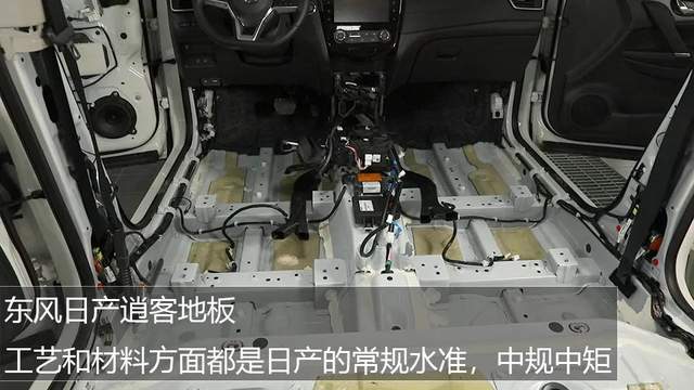 掀开地垫之后,对于熟悉东风日产的朋友来说,地板的表现并不会超出想象。结构件上有一定的打孔处理,在保持强度的前提下进一步轻量化节省成本,布局没有短板,比较合理。但,这是对比,不是单车解析。