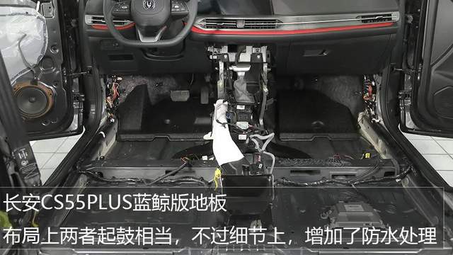 长安CS55PLUS蓝鲸版的地板布局和设计也是比较正常的发挥,没有缺点。不过,在细节上你会发现,部分区域除了上方的地垫覆盖之外,还有第三层的防水处理。