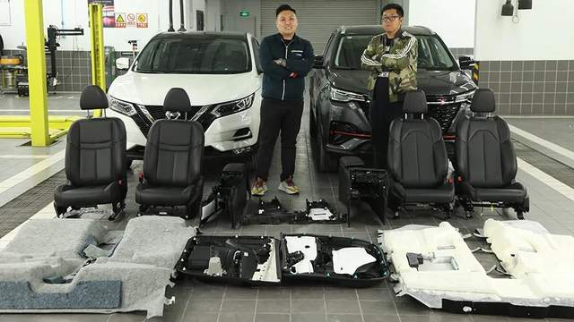 长安CS55PLUS蓝鲸版和东风日产逍客这一次的测试第一阶段,从车辆的门板拆解开始。这是你我最频繁使用的车辆部件,门板即是车辆的开关部件之一,又是直接承载安全能力的重要部件之一,同时它的好坏还将直接决定车内舒适静谧性。